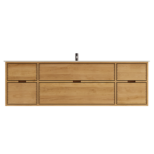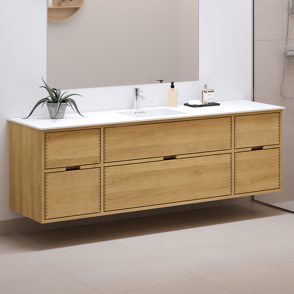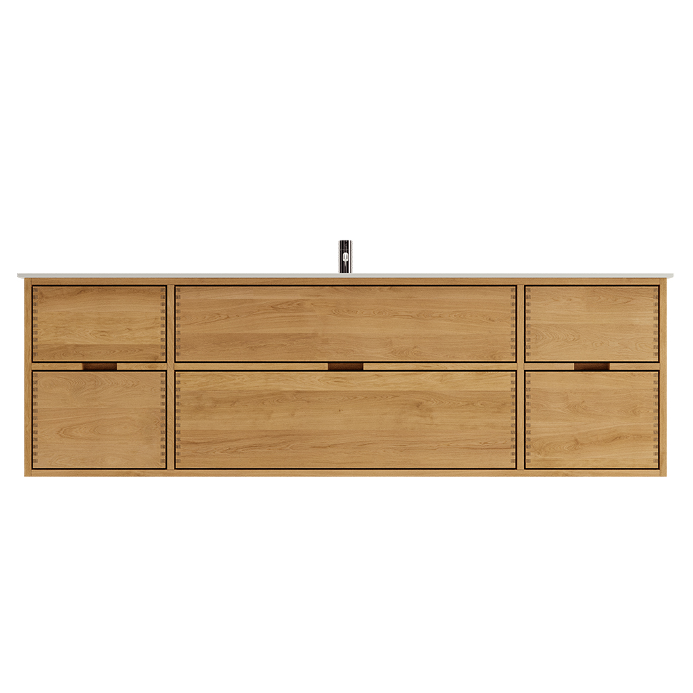 Et unikt snedkerprodukt lavet af de bedste materialer. Massive, olierede og fingertappede træskuffer i egetræ. Alle skuffer med fuldudtræk og softluk. Kraftig 8 mm. tyk bund og ekstra dybe skuffer der udnytter pladsen i skabet optimalt. Alt er lavet, så det passer perfekt sammen.