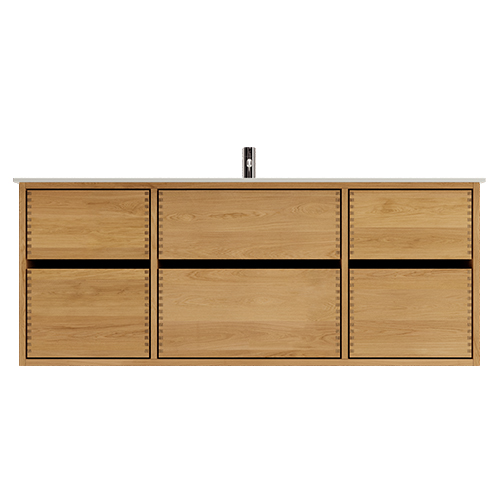Et unikt snedkerprodukt lavet af de bedste materialer. Massive, olierede og fingertappede træskuffer i egetræ. Alle skuffer med fuldudtræk og softluk. Kraftig 8 mm. tyk bund og ekstra dybe skuffer der udnytter pladsen i skabet optimalt. Alt er lavet, så det passer perfekt sammen.
