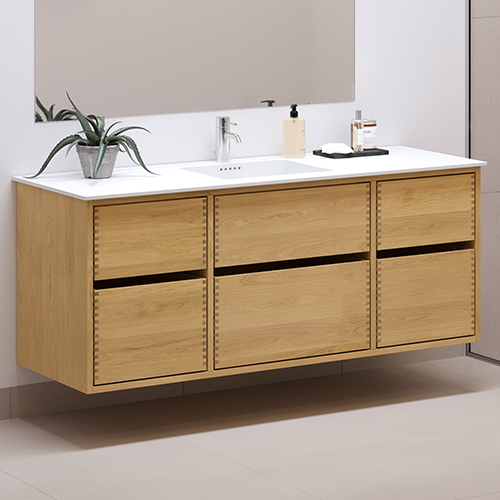 Just Wood er delvist danskproducerede elementer med massive fingertappede skuffer i egetræ. Vores møbler er hvidolieret fra fabrikken. Blandingsforhold er 1 del hvid og 5 dele klar olie fra Junckers.