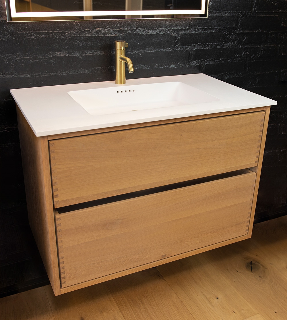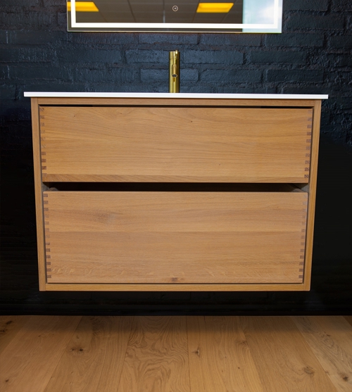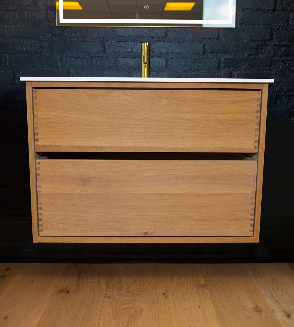 Et unikt snedkerprodukt lavet af de bedste materialer. Massive, olierede og fingertappede træskuffer i egetræ. Alle skuffer med fuldudtræk og softluk. Kraftig 8 mm. tyk bund og ekstra dybe skuffer der udnytter pladsen i skabet optimalt. Alt er lavet, så det passer perfekt sammen.