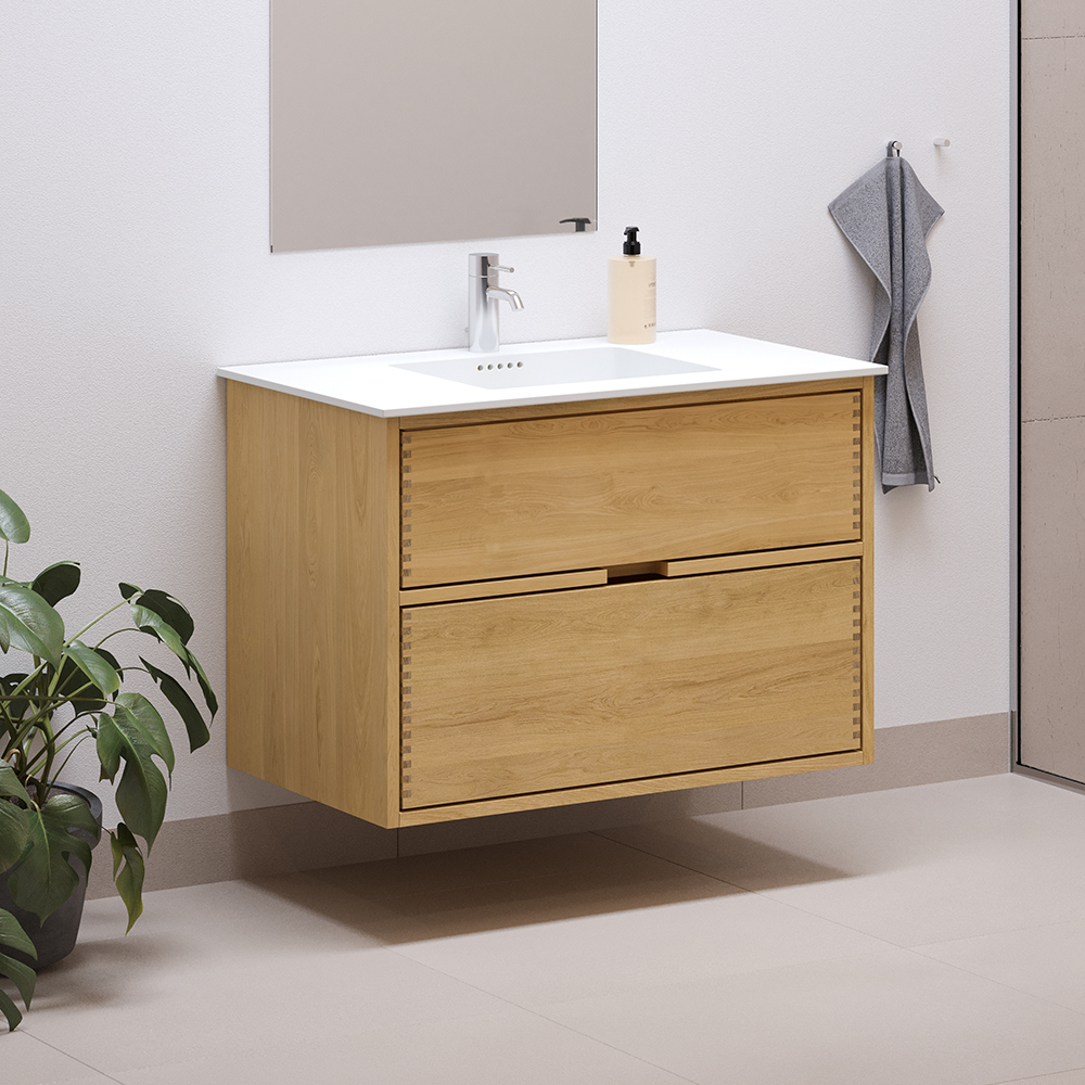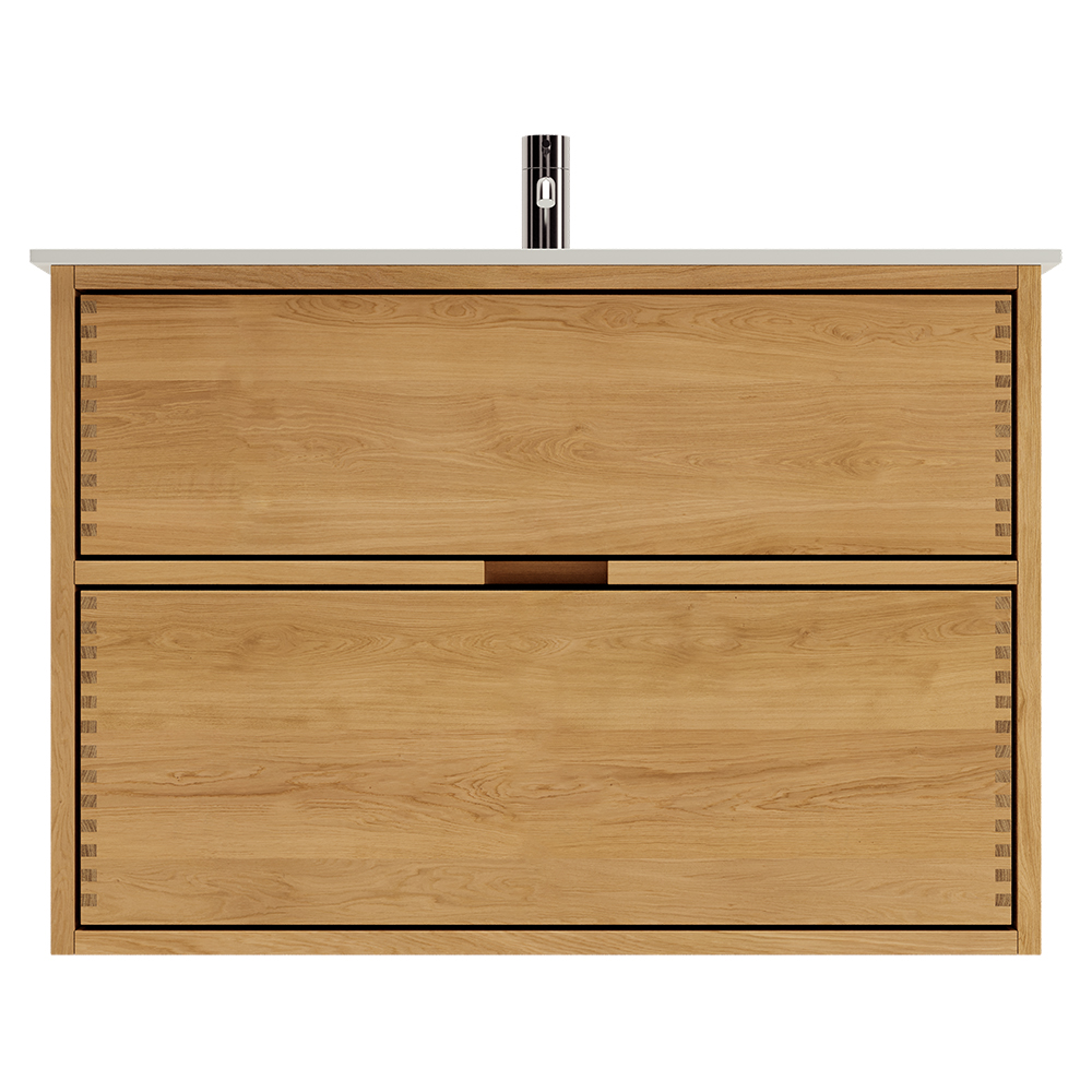 Et unikt snedkerprodukt lavet af de bedste materialer. Massive, olierede og fingertappede træskuffer i egetræ. Alle skuffer med fuldudtræk og softluk. Kraftig 8 mm. tyk bund og ekstra dybe skuffer der udnytter pladsen i skabet optimalt. Alt er lavet, så det passer perfekt sammen.