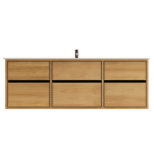 Et unikt snedkerprodukt lavet af de bedste materialer. Massive, olierede og fingertappede træskuffer i egetræ. Alle skuffer med fuldudtræk og softluk. Kraftig 8 mm. tyk bund og ekstra dybe skuffer der udnytter pladsen i skabet optimalt. Alt er lavet, så det passer perfekt sammen.