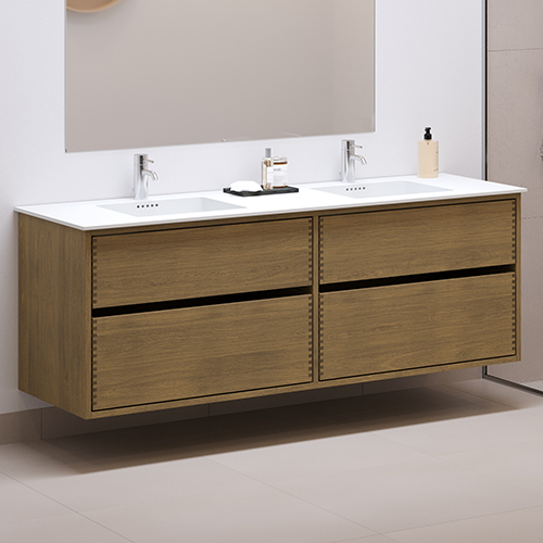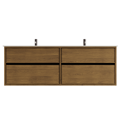 1JU160804041160 cm Mørkolieret Just Wood Original badmøbel med 4 skuffer og Solid Surface bordplade