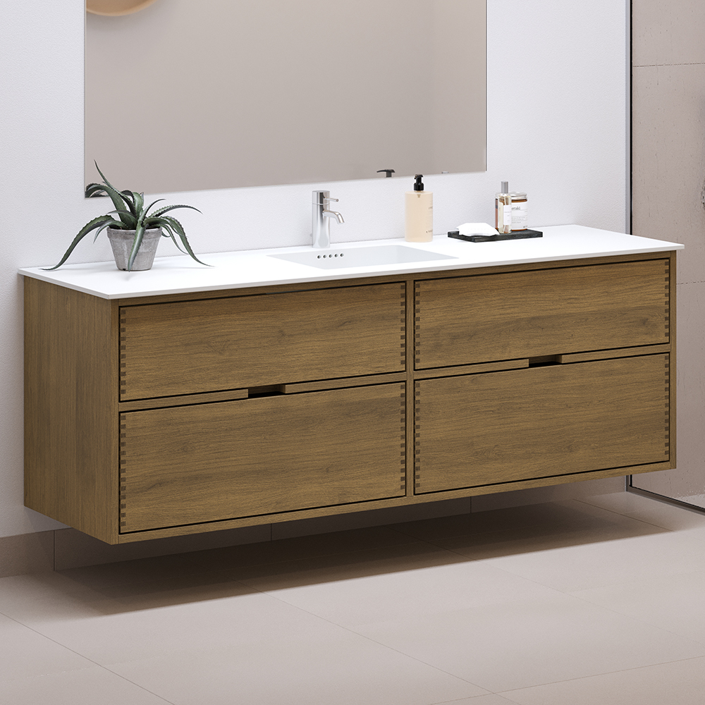 1J160804041160 cm Mørkolieret Just Wood badmøbel med 4 skuffer