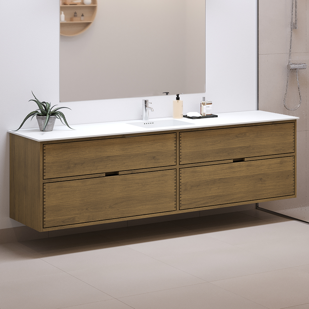 Et unikt snedkerprodukt lavet af de bedste materialer. Massive, olierede og fingertappede træskuffer i egetræ. Alle skuffer med fuldudtræk og softluk. Kraftig 8 mm. tyk bund og ekstra dybe skuffer der udnytter pladsen i skabet optimalt. Alt er lavet, så det passer perfekt sammen.