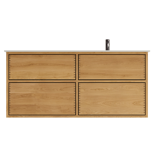 Et unikt snedkerprodukt lavet af de bedste materialer. Massive, olierede og fingertappede træskuffer i egetræ. Alle skuffer med fuldudtræk og softluk. Kraftig 8 mm. tyk bund og ekstra dybe skuffer der udnytter pladsen i skabet optimalt. Alt er lavet, så det passer perfekt sammen.