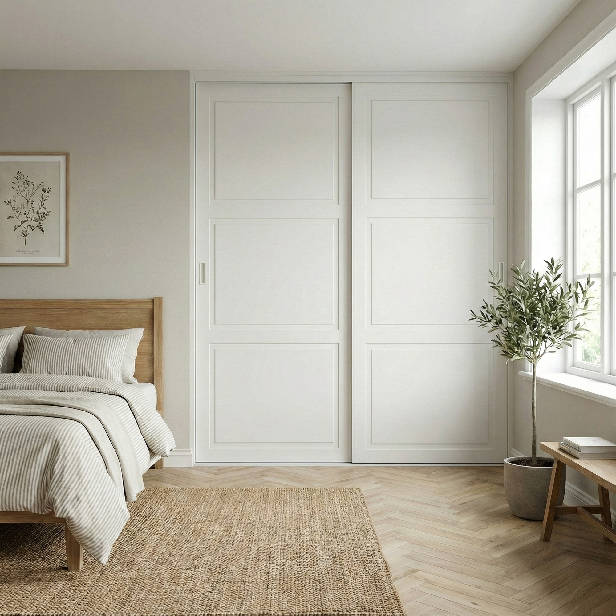 Mogensen Contoura Almue Folie skydelåger på mål til garderobe med 2 låger - Total bredde 196 til 238 cm.