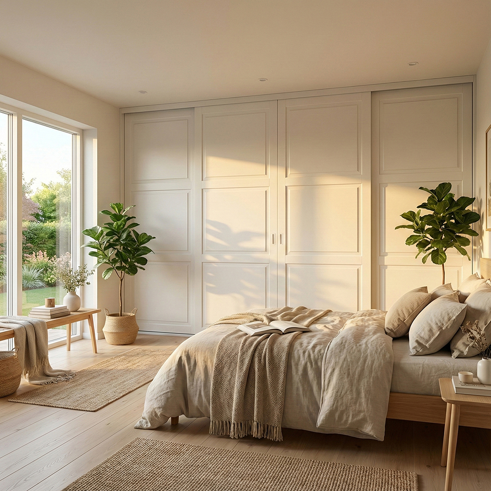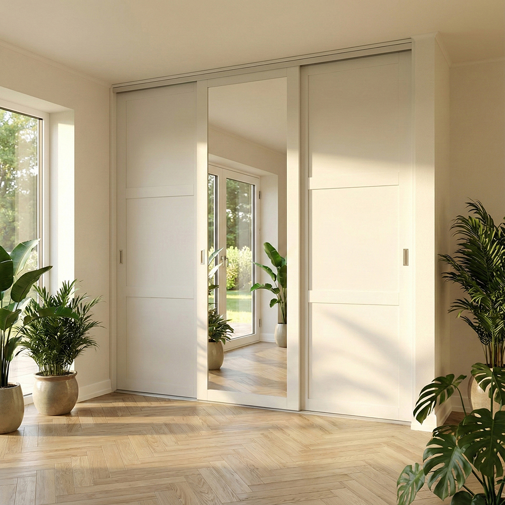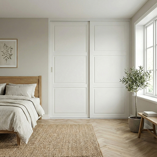 Mogensen Contoura Almue Folie skydelåger på mål til garderobe med 4 låger - Total bredde 388 til 476 cm.