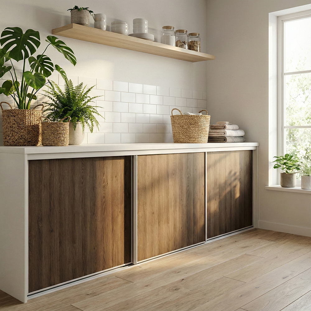 Mogensen Fashionline skydelåger på mål til garderobe med 2 låger - Total bredde 156 til 195 cm.