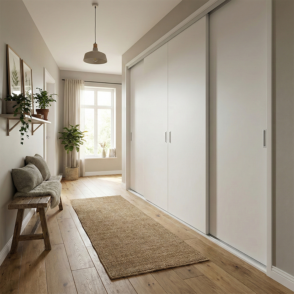Mogensen Plano skydelåger på mål til garderobe med 3 låger - Total bredde 144 til 192 cm.